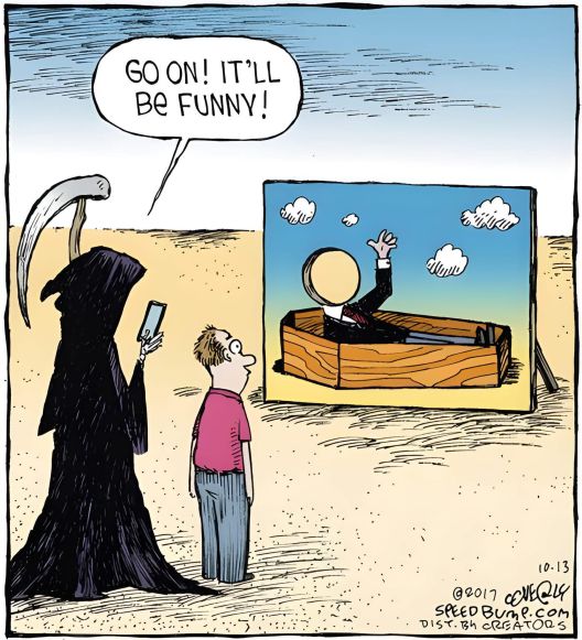 Дванаесет слики чија тема се смртта, умирањето, гробиштата... и хуморот.
