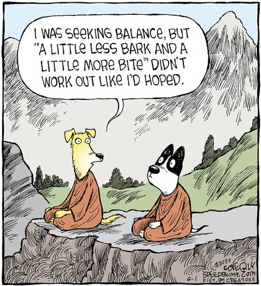 Барав баланс меѓу ’малку помалку лаење и малку повеќе гризење’, ама баш и не го најдов.