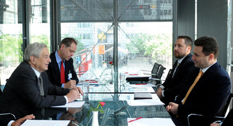 „Премиерот Никола Груевски се сретна со Џорџ Сорос, претседавач на Фондациите отворено општество“. Фото: Влада на РМ.