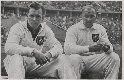 Спротивно на тоа, сликичката посветена на дисциплината фрлање диск ја слави силата на спортистите во служба на нацизмот. Текстот со неа опишува како фрлачот на диск Ервин Бласк, за време на своето второ фрлање почувствувал „налет на последна сила“ во моментот кога Фирерот влегол во својата ложа, што му донело водство по квалификациите. На сликичката можеме да го видиме и неговиот сонародник Карл Хајн кој го срушил олимпискиот рекорд со 56,49 метри додека Бласк морал да се задоволи со сребрен медал. Изведбата на Хајн буквално е исечена од кадарот. Авторите на албумот одлучиле дискот да го исфрлат од сликата и да го опишат неговиот подвиг во текстот. Телото на атлетичарот изгледа како да е во бестежинска состојба. Во средиштето на сликата лесно можеме да ја видиме свастиката и кралскиот орел на неговиот дрес. Не само што Меѓународниот олимписки одбор, инаку многу ажурен во спроведувањето на своите правила, можел да се измами по прашањето на толеранцијата на еврејските спортисти во германските репрезентации, туку за време на игрите ги толерирал и нацистичките обележја на дресовите на спортистите.