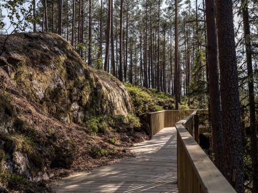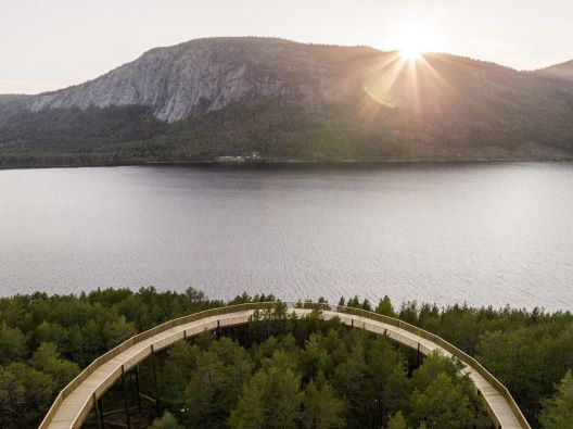 Лоцирана во рекреативниот парк Хамарен, боровата патека полека се пробива на 15 метри низ езерската шума пред да стигне до циркуларниот поглед. Конструкцијата, изградена во соработка со локалниот конструктор Инге Аамлид, се протега на околу два метри широчина и должина од еден километар додека ги води посетителите по угорнините на бујниот рид Клокархамарен, кој достигнува 338 метри на својот врв.
